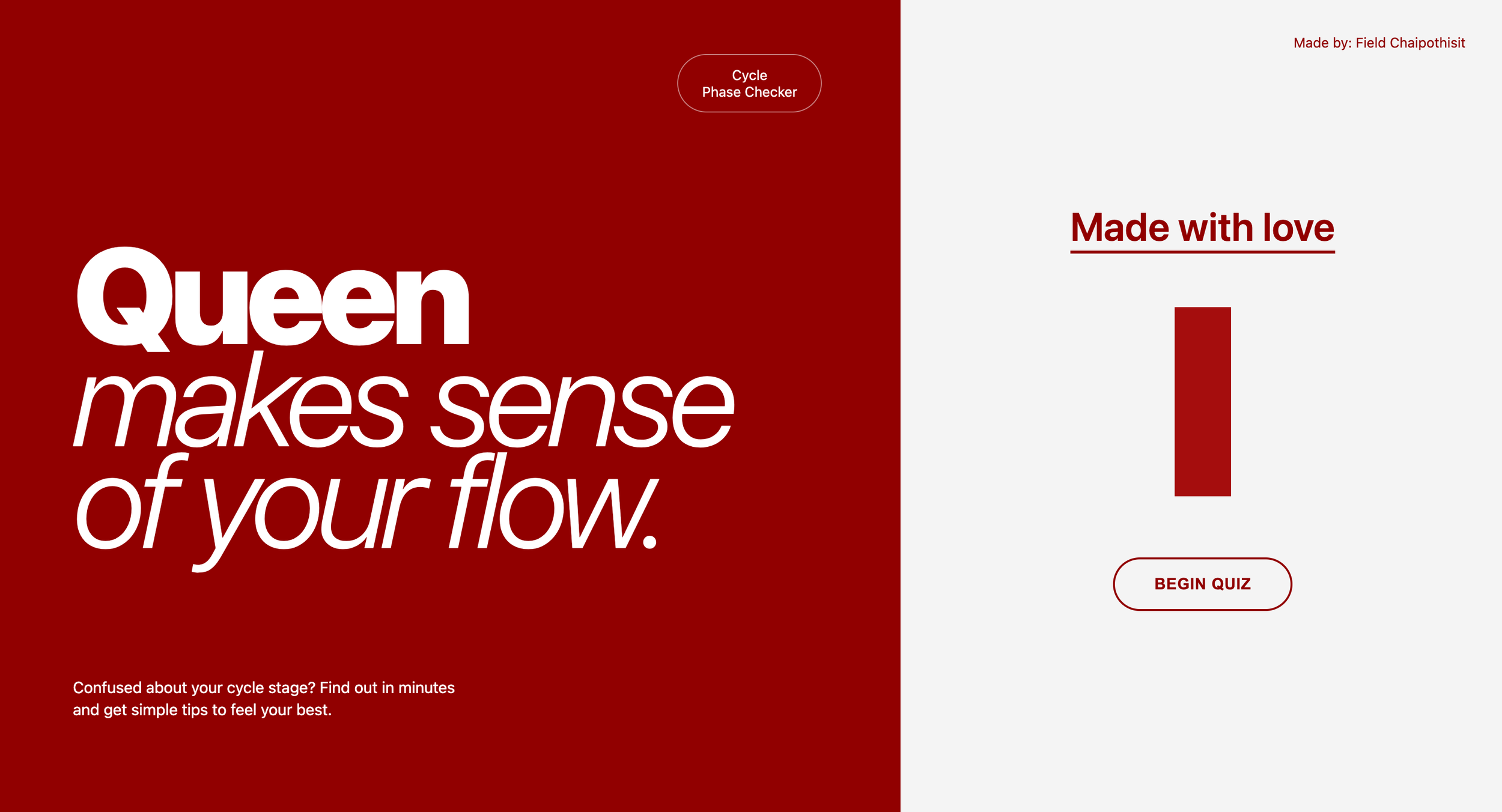 Queen is a cycle phase checker that makes sense of your flow with clear insights and confidence-boosting tips.