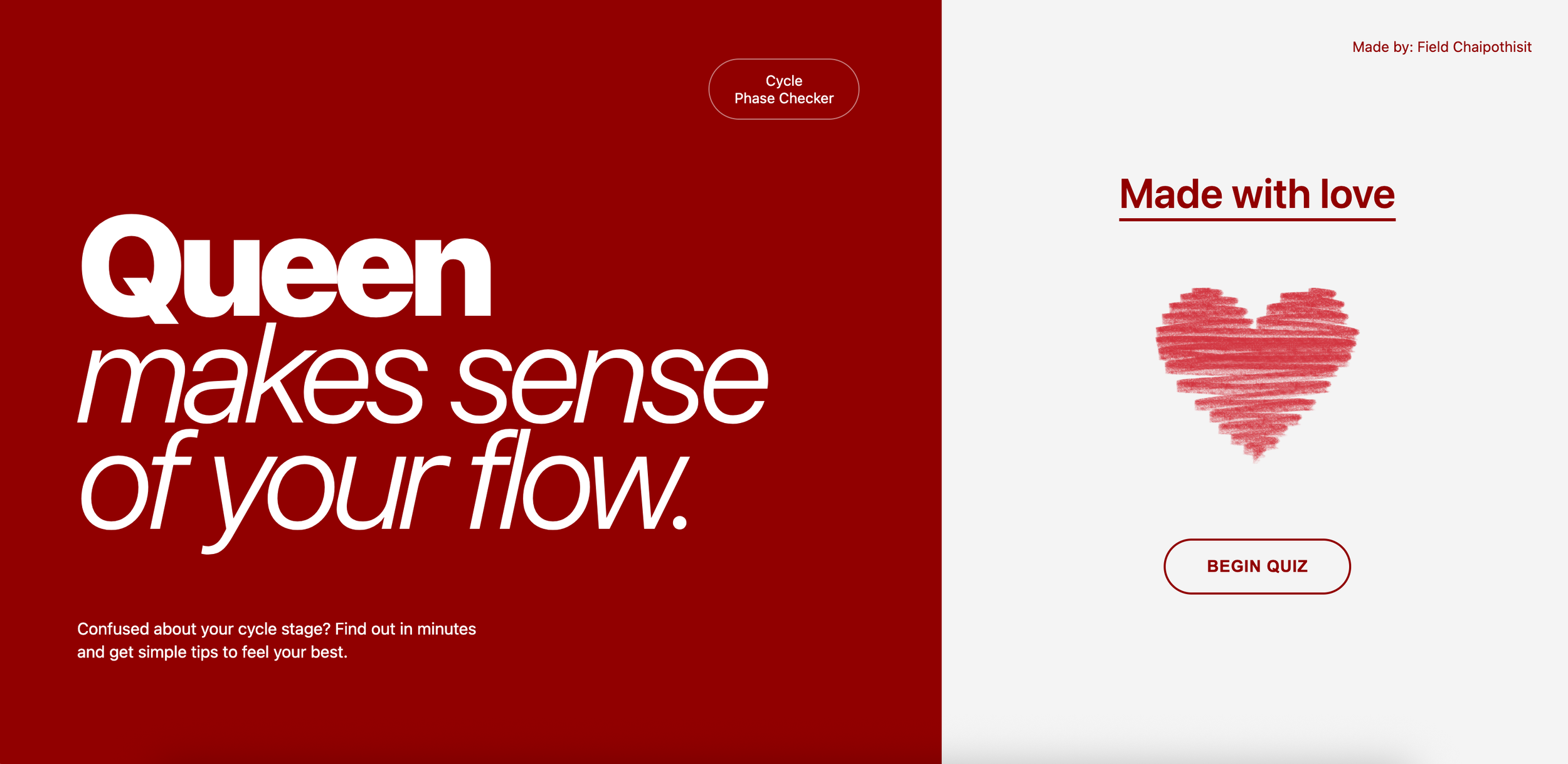 Queen is a cycle phase checker that makes sense of your flow with clear insights and confidence-boosting tips.